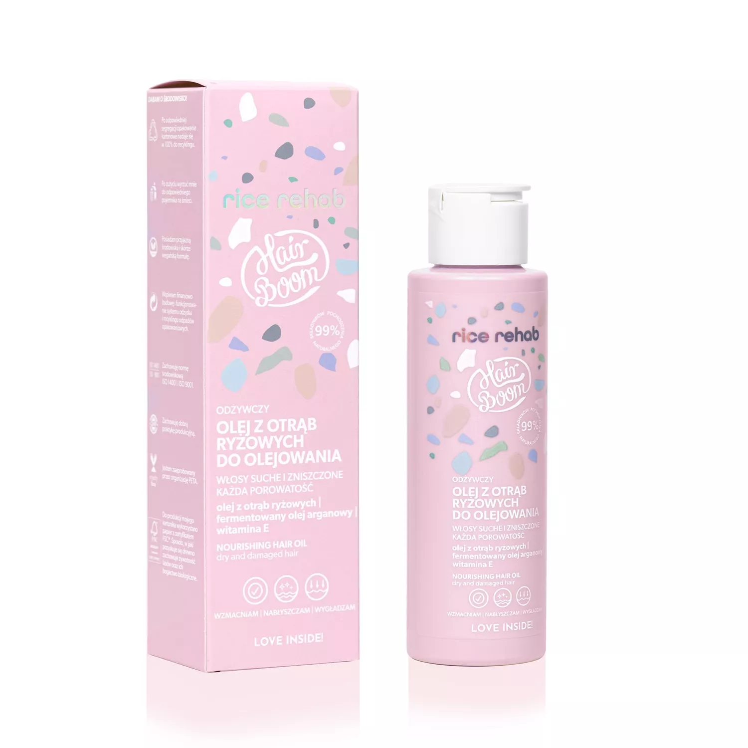 Jestem naturalnym (99% składników pochodzenia naturalnego wg normy ISO 16128), odżywczym olejem ryżowym, stworzonym do olejowania włosów suchych i zniszczonych o każdej porowatości, które potrzebują solidnej regeneracji, wzmocnienia, nabłyszczenia i wygładzenia. Posiadam bogatą formułę i cudownie pachnę, dlatego wiem, że zaprzyjaźnimy się na dłużej.
