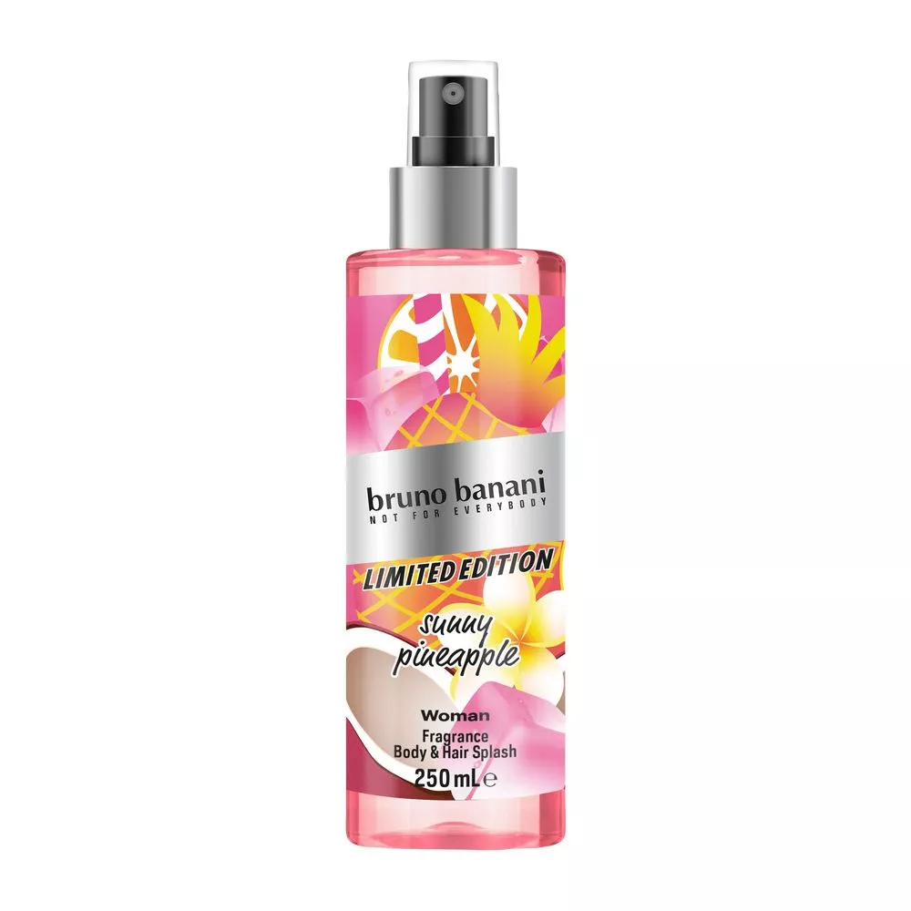 Powitaj lato z Bruno Banani Woman Limited Edition Sunny Pineapple, zapachową mgiełką do ciała i włosów, która swoim świeżym, długotrwałym aromatem przeniesie Cię na przepiękną plażę. Zatrać się w kwiatowo-owocowych nutach i dołącz do wspaniałej wakacyjnej zabawy z Bruno Banani!