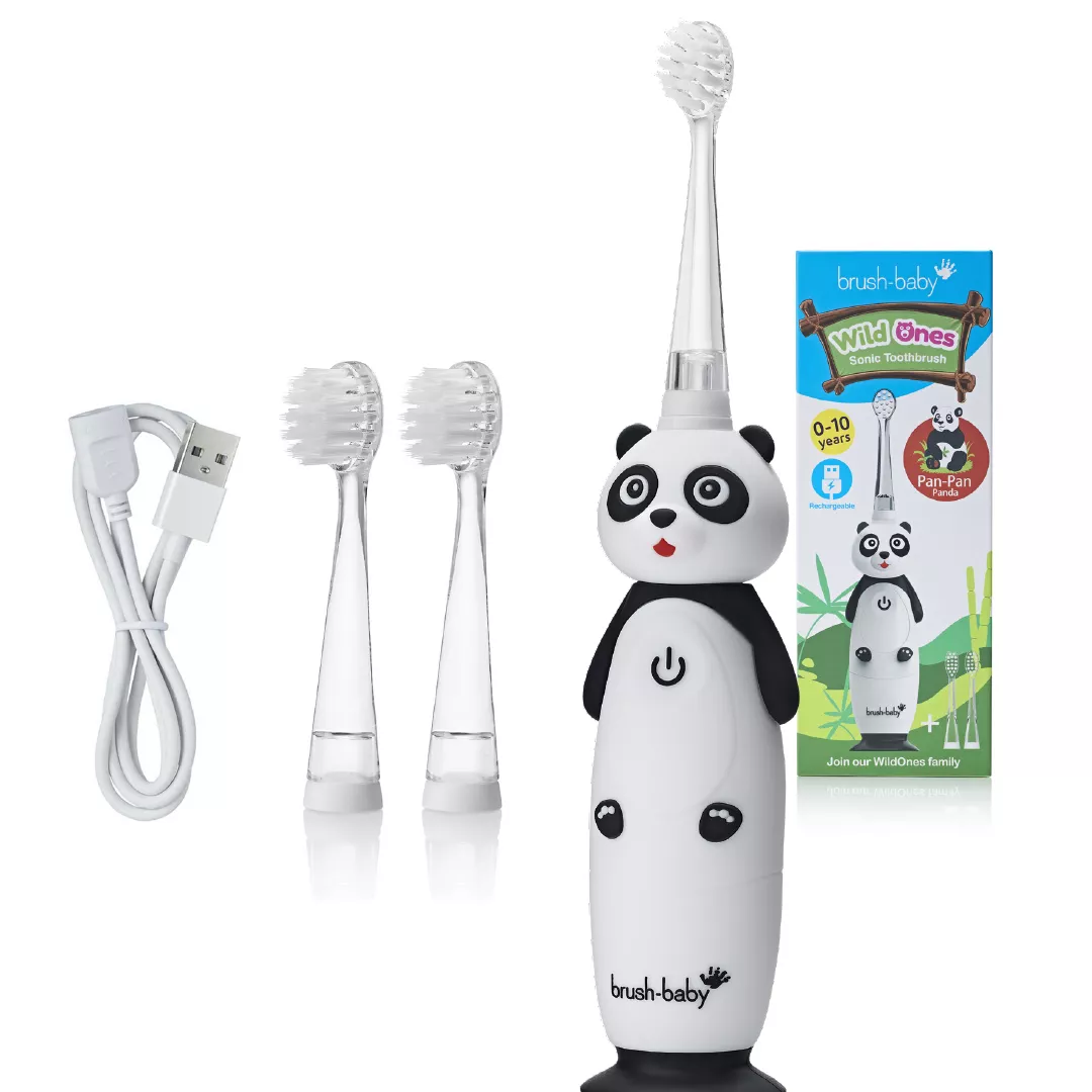 Brush-Baby WildOnes szczoteczka soniczna dla dzieci 0-10l Panda to urocze i funkcjonalne narzędzie, które przynosi radość zarówno rodzicom, jak i maluchom podczas codziennej higieny jamy ustnej. Dzięki dwuminutowemu timerowi, zęby są szczotkowane odpowiednio długo, a dwupoziomowe włosie nici dentystycznej ułatwia utrzymanie ich w czystości.
