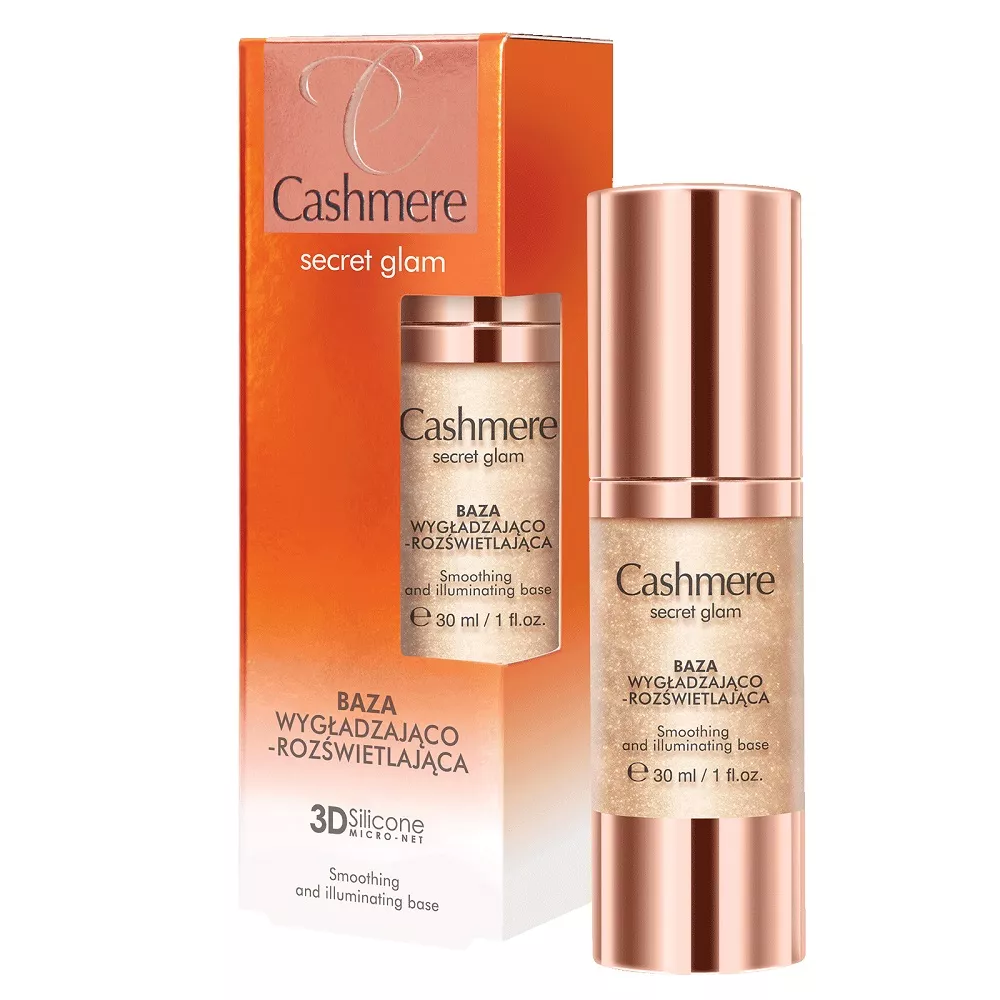 Cashmere Secret Glam to baza wygładzająco-rozświetlająca pod makijaż, która jest odpowiednia dla każdego rodzaju cery. Dzięki kaszmirowej formule z mikrosiateczką przestrzennych silikonów 3D, produkt ten zapewnia perfekcyjne wykończenie makijażu oraz przedłuża jego trwałość. Doskonale maskuje wszelkie niedoskonałości cery i wygładza zmarszczki, dając efekt idealnie gładkiej i miękkiej w dotyku skóry. Zawartość odbijających światło mikropigmentów ożywia ziemistą i zmęczoną cerę, dodając jej zdrowego i promiennego wyglądu. Produkt ten doskonale sprawdza się zarówno jako samodzielny kosmetyk, jak i baza pod makijaż.