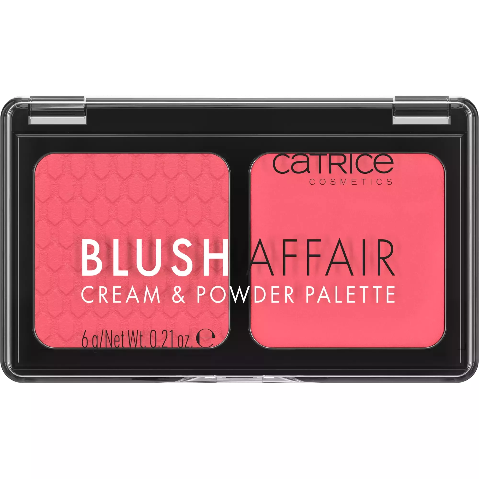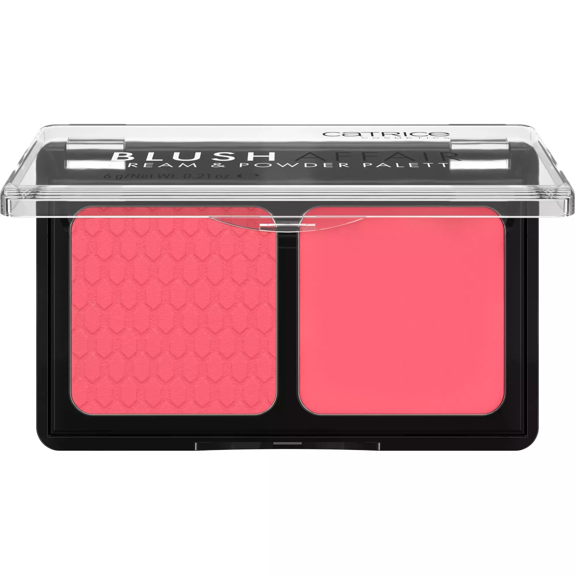 Paleta różów do policzków Catrice Blush Affair Cream & Powder zapewnia to, co najlepsze z dwóch światów: róż o kremowej formule i aksamitnie miękki puder. Obydwa są mocno napigmentowane, więc aby uzyskać idealne wykończenie, wystarczy użyć niewielkiej ilości produktu. Intensywne odcienie palety nadadzą Twojemu makijażowi piękny, truskawkowy akcent.
