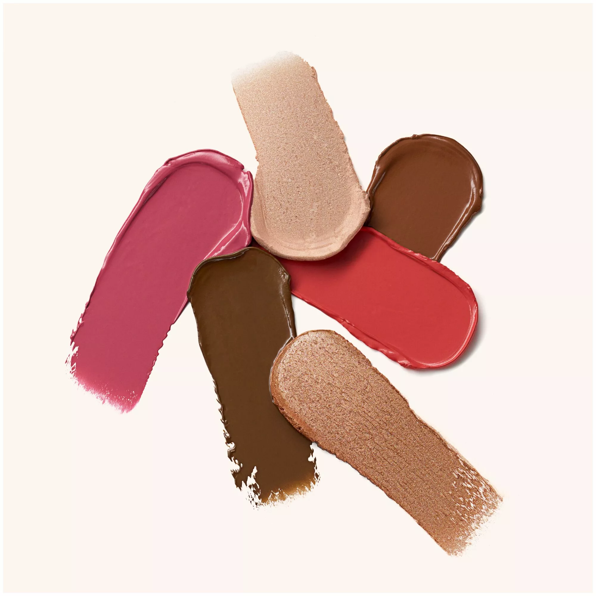 - Zawiera 6 kremowych formuł różu, bronzera i rozświetlacza.