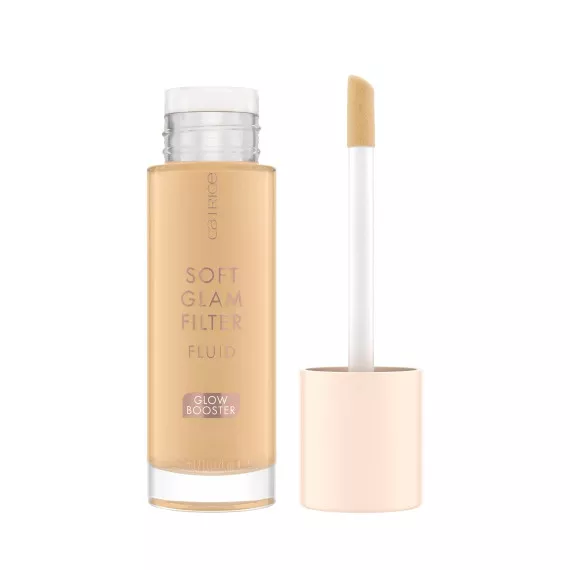 Delikatnie koloryzujący i rozświetlający fluid Catrice Soft Glam w odcieniu 020 Light - Medium zapewnia efekt, jak po użyciu miękkiego filtra w stylu glam i sprawia, że cera jest promienna i udoskonalona. To naprawdę wszechstronny produkt: może być nakładany samodzielnie, jako baza pod makijaż lub na make-up, aby dodatkowo rozświetlić cerę. Formuła z witaminą E i skwalanem odżywia i nawilża skórę.