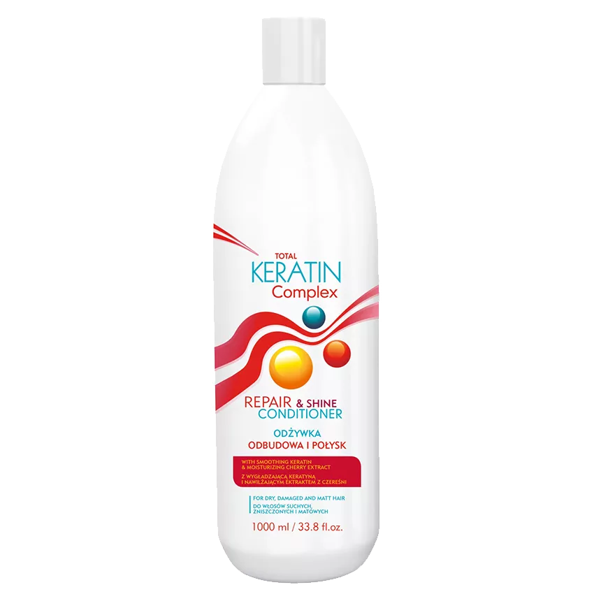 CeCe Total Keratin Complex, odżywka to zaawansowana formuła z wygładzającą keratyną i nawilżającym ekstraktem z czereśni regeneruje i odżywia włosy, ułatwia rozczesywanie i układanie, zapobiega puszeniu. Keratyna – naturalny budulec włosa – wnika w głąb włosa, wygładza łuski, przywraca włosom elastyczność. Włosy są aksamitnie gładkie, lśniące, miękkie w dotyku i odżywione.