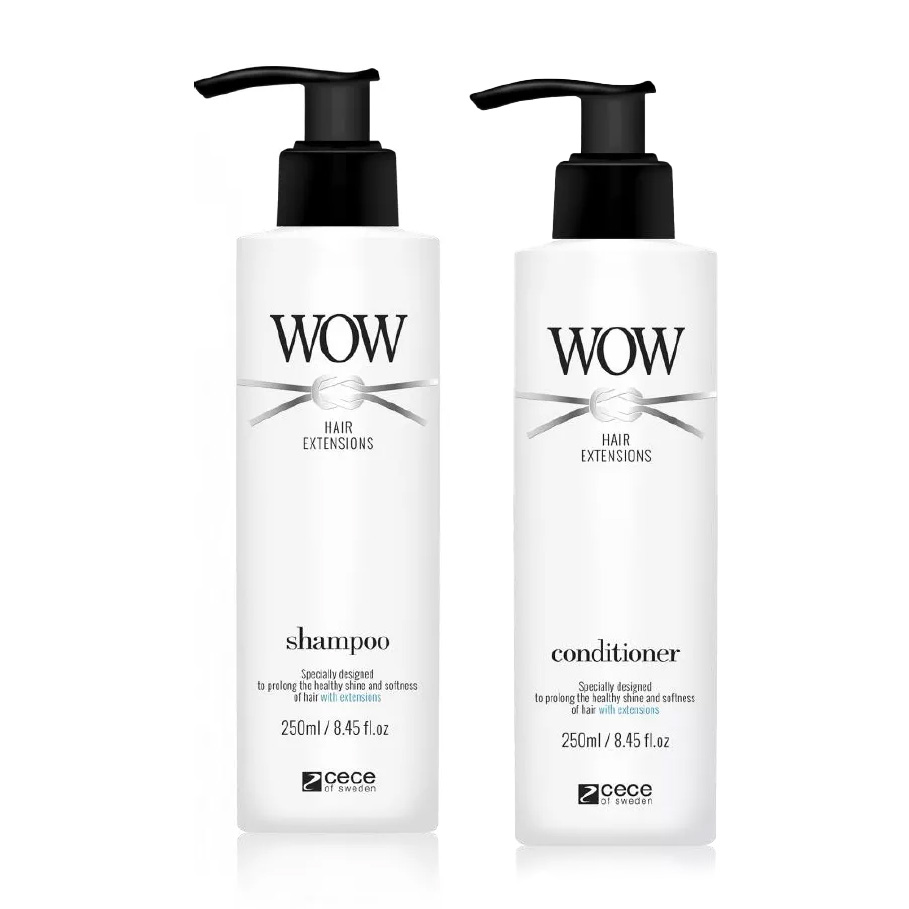 Szampon CeCe WOW Hair Extensions dedykowany jest włosom przedłużanym. Kosmetyk ten oczyszcza oraz zapewnia pasmom niesamowity blask, zmiękczenie oraz elastyczność. Odżywka CeCe WOW Hair Extensions dedykowana jest włosom przedłużanym. Kosmetyk ten zapewnia pasmom niesamowity blask, zmiękczenie oraz elastyczność. Ułatwia rozczesywanie i układanie włosów.