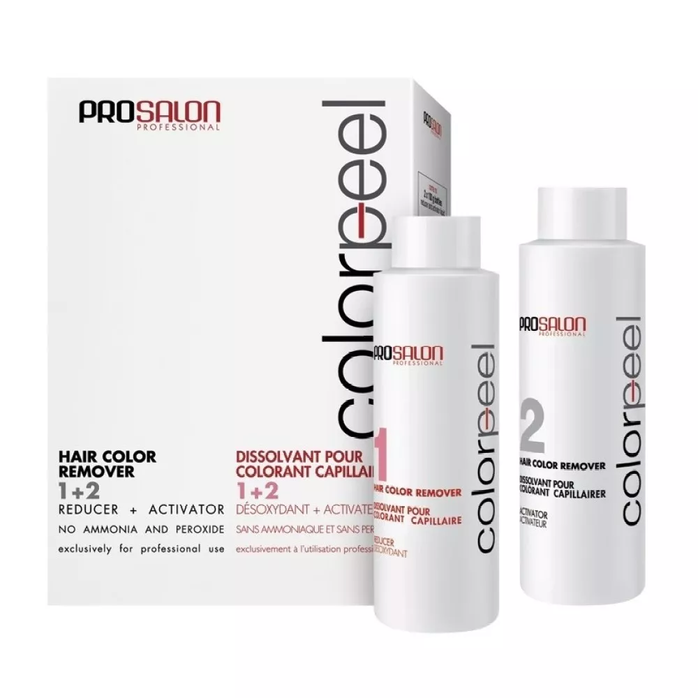 Chantal Prosalon Colorpeel to dekoloryzator przeznaczony do całkowitego usuwania koloru z włosów farbowanych, jednocześnie chroniąc ich naturalny pigment. Idealny zarówno do całkowitego ściągnięcia koloru, jak i do delikatnej korekty, pozwala na ponowne farbowanie włosów bezpośrednio po zabiegu. Produkt jest łagodny dla włosów, ponieważ nie zawiera amoniaku ani wody utlenionej.