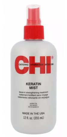 CHI Keratin Mist to profesjonalna odżywka w formie lekkiej mgiełki, przeznaczona do kompleksowej odbudowy i pielęgnacji włosów. Dzięki wysokiej zawartości keratyny – kluczowego budulca włosów – kuracja intensywnie wzmacnia, nawilża oraz wygładza pasma. Regularne stosowanie produktu sprawia, że włosy stają się zdrowsze, bardziej sprężyste i odporne na uszkodzenia, a kwaśne pH (4.0) skutecznie chroni kolor włosów farbowanych przed blaknięciem. Dodatkowo mgiełka zabezpiecza włosy przed wysoką temperaturą podczas stylizacji, zapewniając im wielopoziomową ochronę każdego dnia.