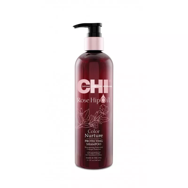 Szampon ochronny CHI Rose Hip Oil to profesjonalny kosmetyk stworzony specjalnie do pielęgnacji włosów farbowanych. Dzięki unikalnej formule z olejkiem z dzikiej róży, witaminą C oraz przeciwutleniaczami skutecznie chroni kolor przed blaknięciem, dodaje włosom sprężystości oraz podkreśla intensywność barwy. Regularne stosowanie szamponu zapewnia włosom zdrowy wygląd, witalność i piękny połysk.