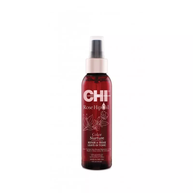 Tonik witaminowy CHI Rose Hip Oil to profesjonalny produkt stworzony z myślą o pielęgnacji włosów farbowanych. Dzięki zawartości olejku z dzikiej róży skutecznie chroni kolor przed blaknięciem, jednocześnie odżywiając i regenerując włosy. Bogaty w antyoksydanty i niezbędne kwasy tłuszczowe, wzmacnia strukturę włosa i przywraca mu naturalny blask. Dodatek jedwabiu zabezpiecza końcówki przed rozdwajaniem, a formuła bez siarczanów i parabenów gwarantuje delikatną, ale skuteczną pielęgnację. Tonik działa również ochronnie przed szkodliwym promieniowaniem UV oraz zapobiega matowieniu włosów, zapewniając im długotrwałą świeżość i połysk.