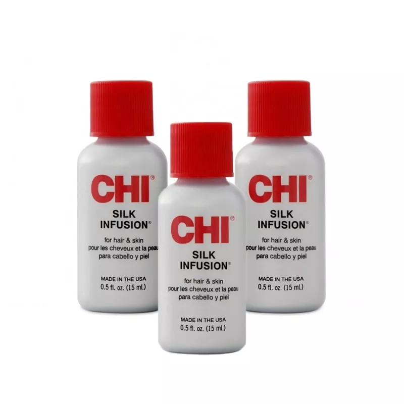 Naturalny jedwab rekonstruujący CHI Silk Infusion został wzbogacony o duże molekuły natualnych protein jedwabnych, pszenicę oraz proteiny soi. Kosmetyk nie zawiera alkoholu oraz nie obciąża włosów. Doskonale sprawdzi się przy stylizacji suszarką lub prostownicą. Mała pojemność bez problemu zmieści się w kosmetyczce, dzięki temu będziesz miała swój ulubiony jedwab zawsze przy sobie!