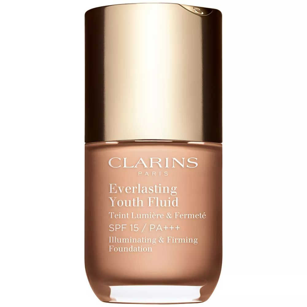 Clarins Everlasting Youth Fluid to przeciwstarzeniowy podkład do twarzy, który nie tylko rozświetla, ale i widocznie ujędrnia skórę. Dzięki ponad 5 ekstraktom roślinnym znanym z właściwości pielęgnacyjnych, podkład wydobywa naturalny blask Twojej skóry! Jego długotrwała formuła zapewnia krycie od średniego do pełnego, lśniące satynowe wykończenie utrzymujące się do 10 godzin oraz 24-godzinne nawilżenie.