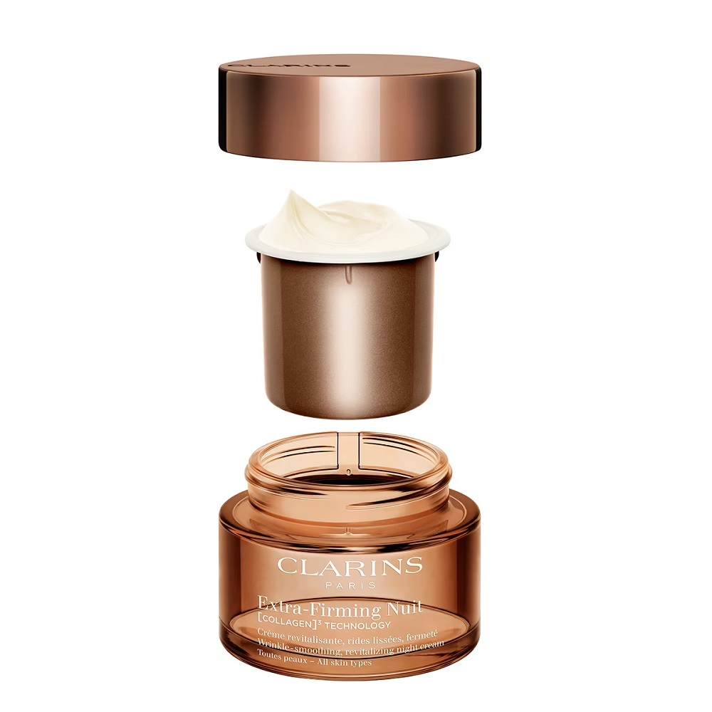 Clarins Extra-Firming krem na noc do każdego rodzaju skóry 50ml to innowacyjny kosmetyk przeciwzmarszczkowy, który wykorzystuje nowoczesną Collagen Technology, aby zapewnić skórze maksymalne ujędrnienie i wygładzenie podczas nocnej regeneracji. Ten luksusowy krem został opracowany w oparciu o badania Clarins i wspiera naturalne rezerwy kolagenu*, sprawiając, że skóra staje się widocznie jędrniejsza już w 7 dni**. Dzięki bogatej, aksamitnej konsystencji kosmetyk zapewnia komfort i miękkość bez efektu tłustego filmu, a rano cera wygląda na wypoczętą i promienną.