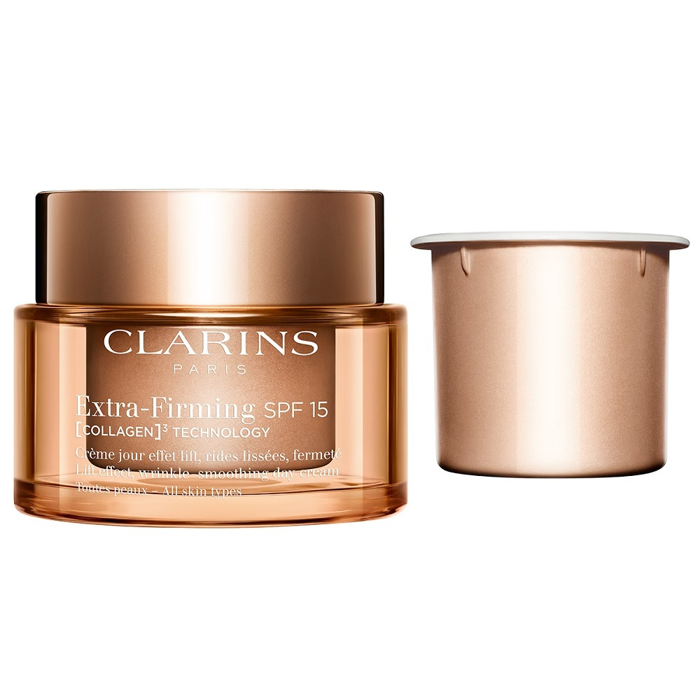 Kremy Extra-Firming dostępne są w wersji do ponownego uzupełniania, łącząc luksus pielęgnacji z ekologicznym podejściem.