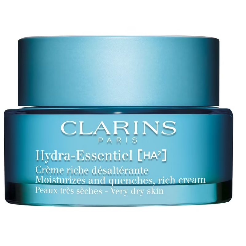 Clarins Hydra-Essentiel [HA²] to bogaty krem nawilżający o pojemności 50 ml, idealny dla bardzo suchej skóry. Dzięki zawartości kwasu hialuronowego, organicznego ekstraktu z żyworódki i masła shea, ten krem skutecznie nawilża, wypełnia, odżywia i przywraca komfort skórze, jednocześnie chroniąc ją przed zanieczyszczeniami i codziennymi czynnikami zewnętrznymi. Jego kremowa, odżywcza i nietłusta konsystencja pozostawia skórę elastyczną i promienną.
