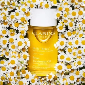 Poczuj ukojenie i odprężenie dzięki Clarins Relax Treatment Oil, relaksującemu olejkowi do ciała. Jego wyjątkowa formuła, wzbogacona ekstraktami roślinnymi, takimi jak geranium, petitgrain, rumianek i bazylia, skutecznie łagodzi stres i zmęczenie. Dodatkowo, olejek z orzechów laskowych odżywia skórę, pozostawiając ją miękką i satynową.