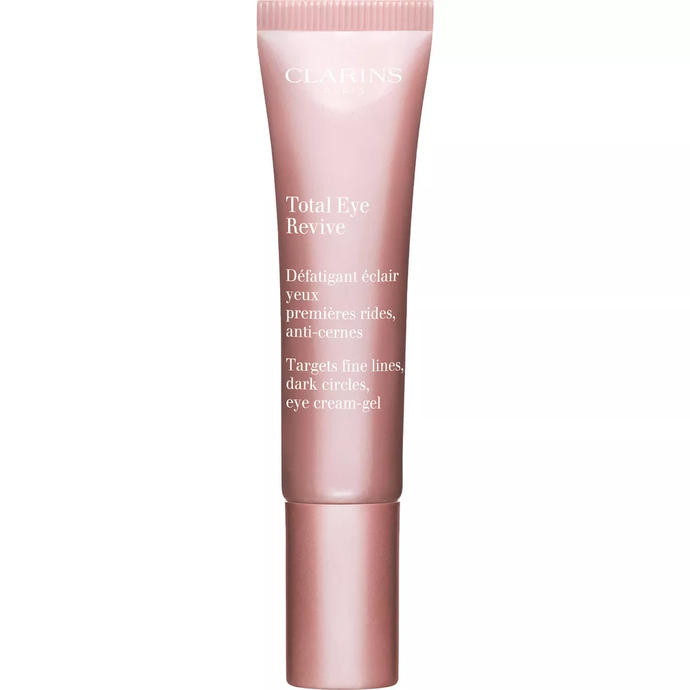 Clarins Total Eye Revive to rewitalizujący krem-żel pod oczy, który skutecznie działa na drobne zmarszczki oraz redukuje oznaki zmęczenia takie jak opuchlizna i cienie. Dzięki żelowej konsystencji i kriometalicznej końcówce, produkt zapewnia natychmiastowy efekt — oczy stają się mniej opuchnięte i bardziej promienne. Znikają oznaki zmęczenia, a drobne zmarszczki są wyraźnie wygładzone.