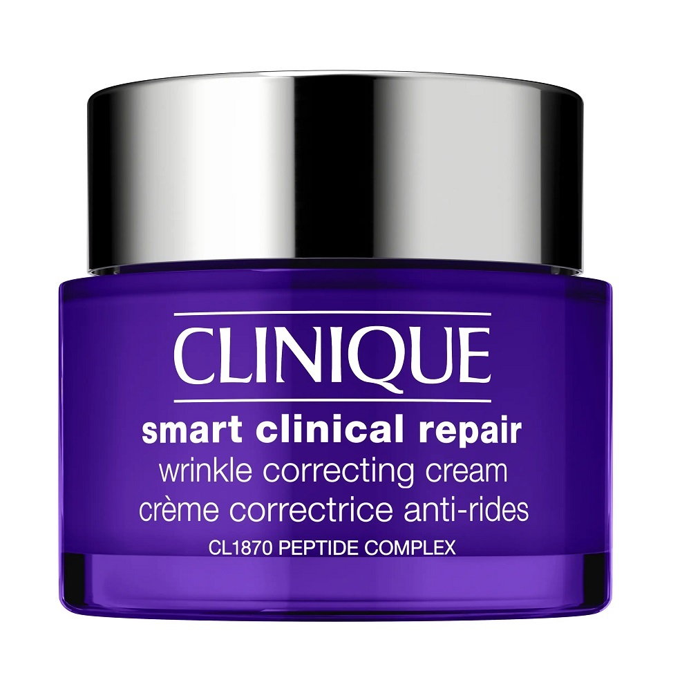 Clinique Smart Clinical Repair™ Wrinkle Correcting Cream to nawilżający krem przeciwzmarszczkowy, który wzmacnia i odżywia skórę, zapewniając jej gładkość i młodzieńczy wygląd. Jest częścią najbardziej zaawansowanej linii odmładzającej Clinique, opracowanej z myślą o widocznej redukcji drobnych linii i zmarszczek. Krem zawiera formułę CL 1870 Peptide Complex™, która wspomaga produkcję kolagenu, wzmacniając strukturę skóry i czyniąc ją mocniejszą oraz gładszą.