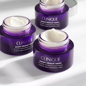 Skóra wokół oczu jest delikatna i podatna na uszkodzenia. Clinique Smart Clinical Repair Wrinkle Correcting Eye Cream to przeciwzmarszczkowy krem pod oczy, który wzmacnia skórę, czyniąc ją gładszą i bardziej sprężystą. Jego innowacyjna formuła, wzbogacona w CL1870 Peptide Complex™, ekstrakt z Sigesbeckia Orientalis i kwas hialuronowy, skutecznie redukuje widoczność zmarszczek oraz stymuluje naturalną produkcję kolagenu. Twoja skóra pod oczami stanie się jędrniejsza, ukojona i odpowiednio nawilżona, a widoczne zmarszczki zostaną wygładzone. Produkt jest odpowiedni dla wrażliwych oczu i osób noszących soczewki kontaktowe. Testowany okulistycznie.