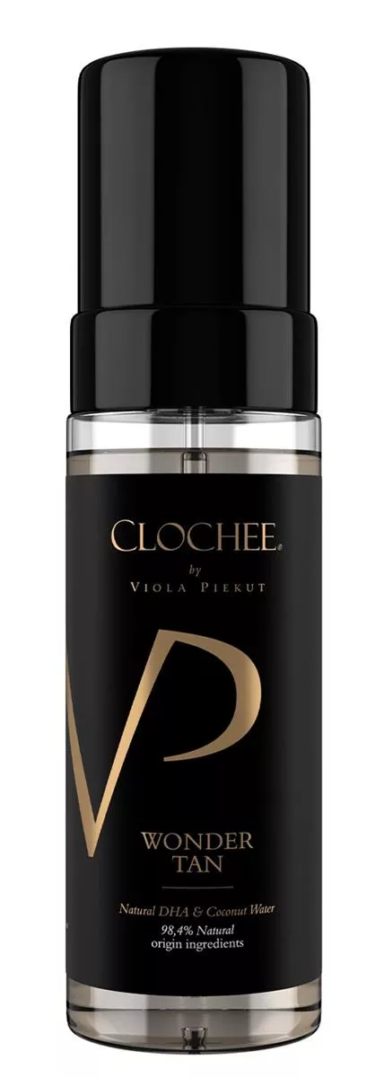 Clochee Wonder Tan to brązująca pianka do twarzy i ciała, która pozwala uzyskać efekt naturalnej, zdrowo wyglądającej opalenizny bez konieczności ekspozycji skóry na słońce. Innowacyjna, lekka formuła zapewnia nawilżenie i wygładzenie, podkreślając promienny blask skóry przez cały rok. Dzięki starannie dobranym składnikom, pianka pielęgnuje nawet wrażliwą cerę, nie powodując smug ani przesuszenia.