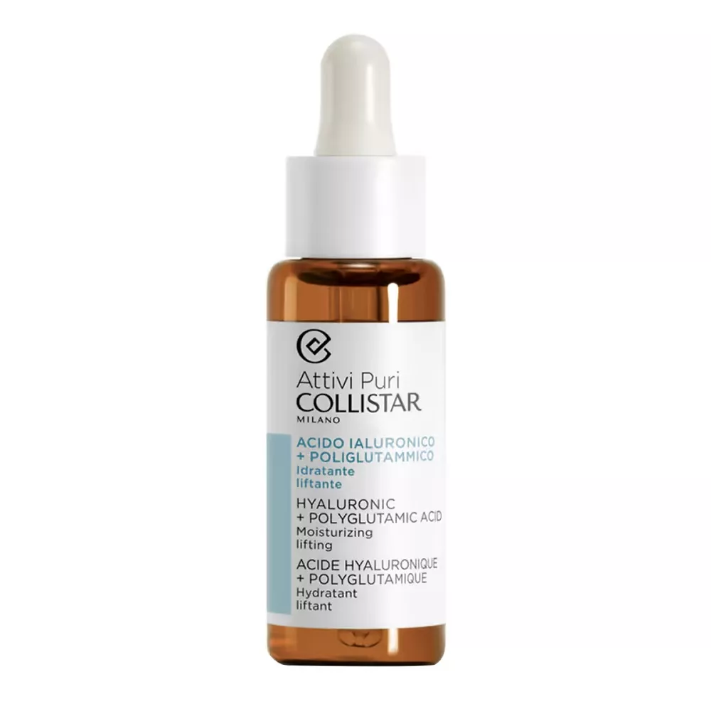 Collistar Attivi Puri Hyaluronic + Polyglutamic Acid Moisturizing Lifting to zaawansowane serum do twarzy, które oferuje intensywne i wielopoziomowe nawilżenie skóry dzięki połączeniu kwasu hialuronowego z kwasem poliglutaminowym. Specjalna formuła oparta na czterech masach cząsteczkowych kwasu hialuronowego zapewnia kompleksowe działanie na skórę, od powierzchni aż po głębokie warstwy.