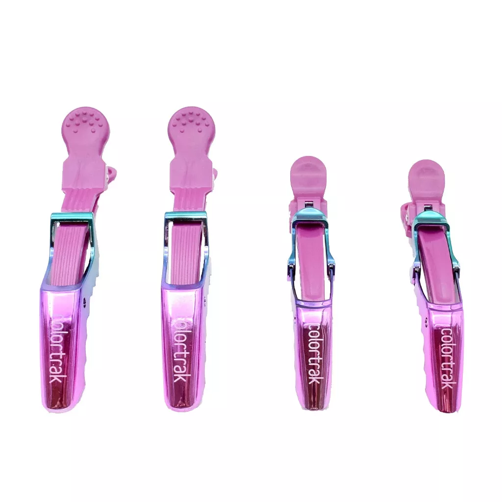 Odkryj niezwykłą funkcjonalność i styl z klipsami do włosów Colortrak Aurora. Te wyjątkowe akcesoria nie tylko skutecznie podtrzymują włosy, ale także zachwycają swoim tęczowym, metalicznym wykończeniem, które dodaje blasku każdej stylizacji. W zestawie znajdują się cztery klipsy o różnej wielkości, co czyni je idealnym wyborem do różnorodnych fryzur.
