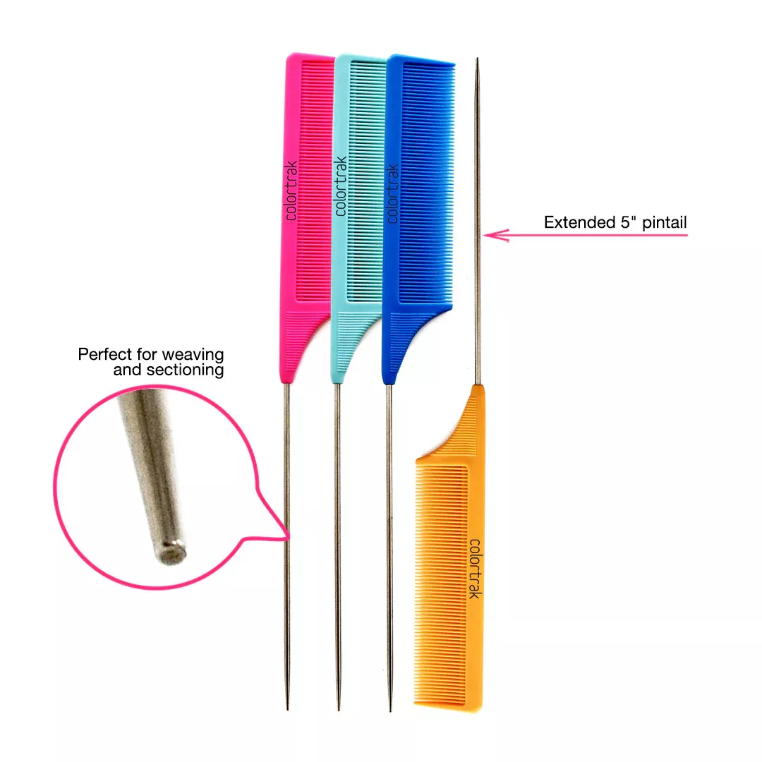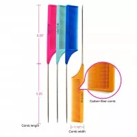 Profesjonalne, wytrzymałe grzebienie karbonowe do włosów Colortrak posiadają drobne zęby, idealne do czesania i stylizacji. Za pomocą szpikulca można rozdzielać włosy na sekcje. Grzebienie są odporne na wysoką temperaturę i antystatyczne, więc nie trzeba obawiać się elektryzowania włosów. Szpikulec wykonano ze stali nierdzewnej.