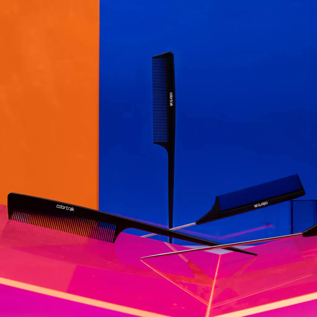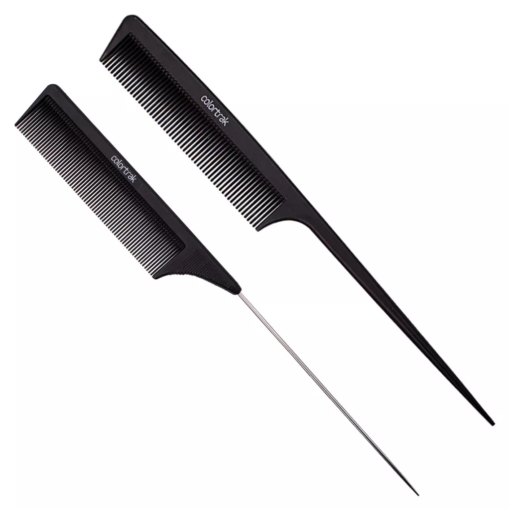 Profesjonalne, wytrzymałe grzebienie karbonowe do włosów Colortrak posiadają drobne zęby, idealne do czesania i stylizacji. Za pomocą szpikulca można rozdzielać włosy na sekcje. Grzebienie są odporne na wysoką temperaturę i antystatyczne, więc nie trzeba obawiać się elektryzowania włosów.