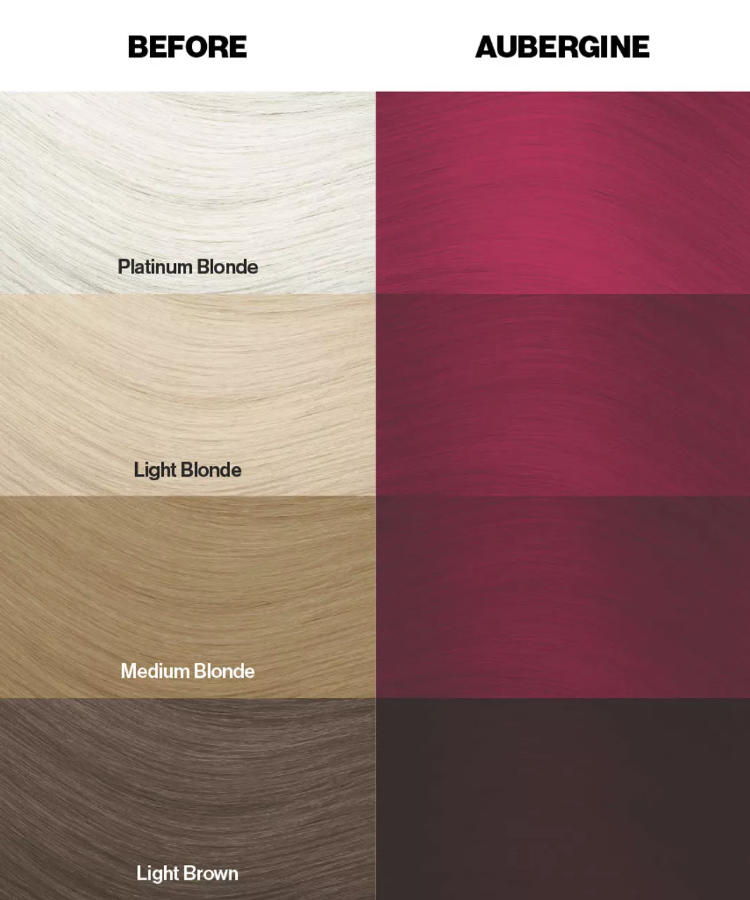 Crazy Color, toner odżywczy do włosów Aubergine (oberżyna) nr 50 to półtrwały produkt koloryzujący, który pozwala uzyskać intensywny, głęboki odcień bakłażana bez potrzeby stosowania oxydantów. Toner został stworzony z myślą o osobach poszukujących mocnych efektów kolorystycznych oraz pielęgnacji włosów. Produkt jest w 100% wegański, nie zawiera PPD, amoniaku, glutenu, parabenów ani siarczanów. Dla najlepszych efektów zaleca się wcześniejsze rozjaśnienie włosów. Kolor utrzymuje się do 20 dni, czyli przez około 10-12 myć.