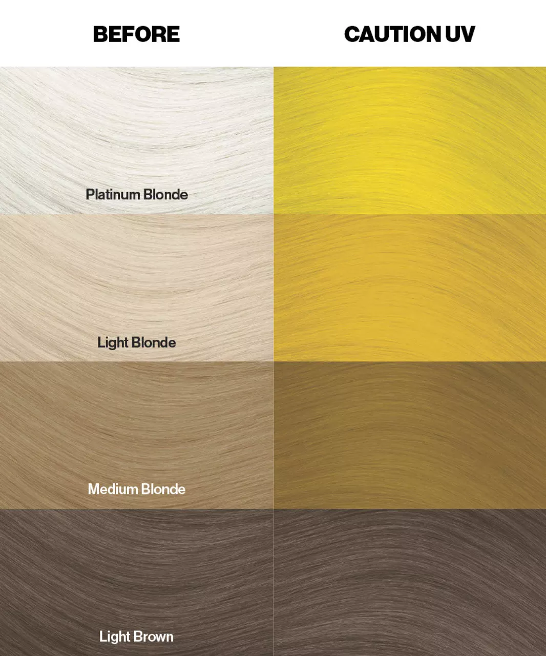 Crazy Color, toner odżywczy do włosów Caution UV nr 77 to neonowo żółty, wyrazisty kolor, który podkreśli Twój indywidualny styl! Toner nie wymaga dodatkowych oxydantów, a dla najlepszego efektu zaleca się wcześniejsze rozjaśnienie włosów. Kolor utrzymuje się aż do 20 dni (10-12 myć), zapewniając intensywny blask i spektakularny efekt. Produkt jest w 100% wegański, nie zawiera PPD, amoniaku, glutenu, parabenów ani siarczanów, dzięki czemu jest łagodny dla włosów i skóry głowy. Wyprodukowany w Wielkiej Brytanii, pozwala uzyskać neonowy, żółty odcień z efektem UV!
