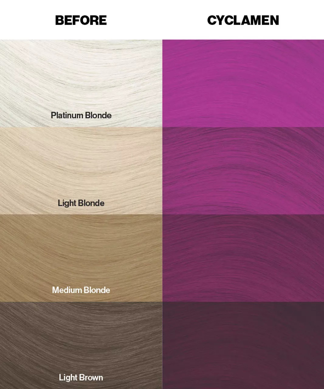 Crazy Color, toner odżywczy do włosów Cyclamen nr 41 to wyjątkowy sposób na uzyskanie intensywnego, trwałego koloru bez konieczności stosowania oxydantów. Dzięki tej półtrwałej koloryzacji możesz cieszyć się pięknym, cyklamenowym odcieniem nawet do 20 dni (10-12 myć). Produkt jest idealny zarówno do odświeżenia koloru, jak i do kreatywnej zabawy z odcieniami – wszystkie tonery Crazy Color możesz ze sobą mieszać, uzyskując niepowtarzalne rezultaty. Toner najlepiej sprawdza się na rozjaśnionych włosach, a jego formuła dba o kondycję pasm w trakcie koloryzacji.
