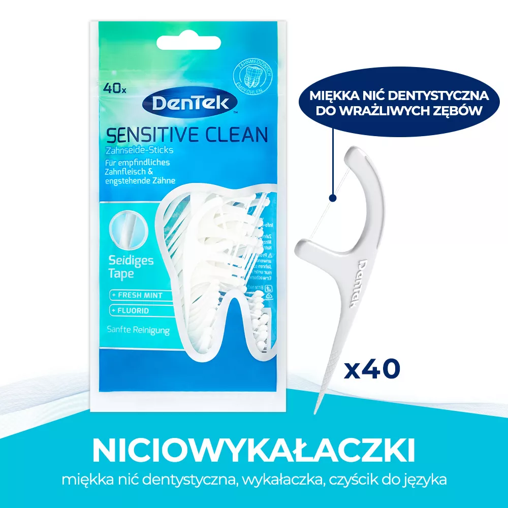 Dentek, niciowykałaczki Sensitive Clean, 40szt.