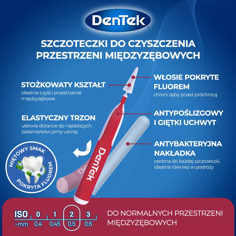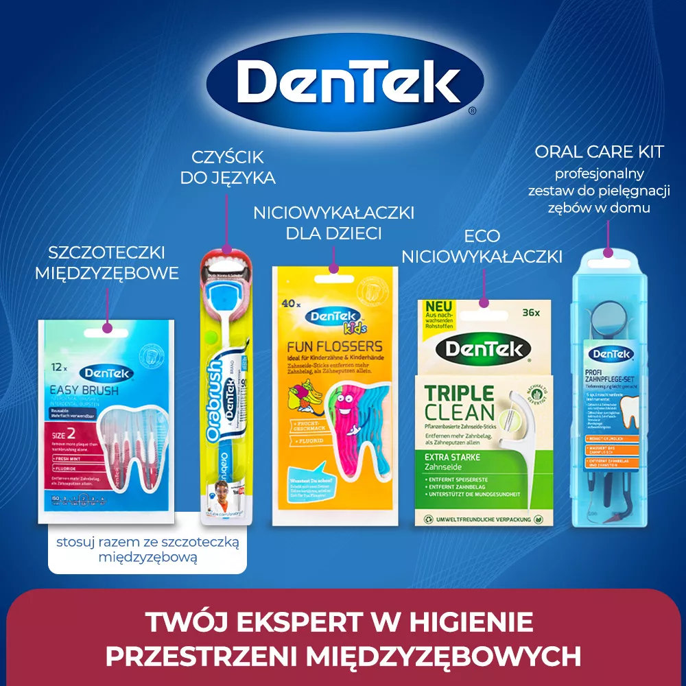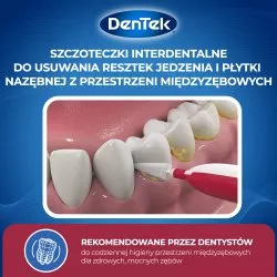 Szczoteczki interdentalne DenTek EasyBrush to doskonałe rozwiązanie do codziennej higieny jamy ustnej. Dzięki stożkowatemu kształtowi, idealnie nadają się do czyszczenia trudno dostępnych przestrzeni między zębami, aparatami ortodontycznymi, implantami, koronami i mostami. Są delikatne dla zębów i dziąseł, a jednocześnie skutecznie usuwają resztki jedzenia i płytki nazębnej. To świetna alternatywa dla nici dentystycznych, szczególnie dla tych, którzy nie czują się komfortowo podczas ich używania.