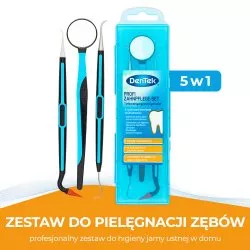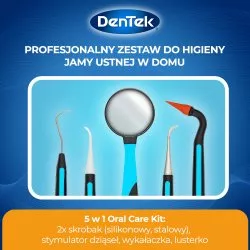 DenTek Oral Care Kit 5w1 to profesjonalny zestaw do pielęgnacji zębów i jamy ustnej, który umożliwia skuteczne i bezpieczne usuwanie płytki nazębnej i kamienia w domowym zaciszu. Dzięki niemu możesz cieszyć się zdrowymi dziąsłami, bielszy zębami i świeżym oddechem bez konieczności częstych wizyt u dentysty. Idealny do stosowania między regularnymi wizytami stomatologicznymi jako uzupełnienie kompleksowej higieny jamy ustnej.