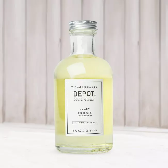 Regenerujący płyn po goleniu Depot No. 407 to gwarancja świeżości, nawilżenia i długotrwałej odnowy biologiczne. Kosmetyk w składzie zawiera bisabobol, który znany jest ze swoich cennych właściwości ochronnych, odżywczych i kojących. Ponadto pro-witamina B5 ma działanie odżywcze, kojące i regenerujące, a gliceryna utrzymuje zbilansowany poziom wilgoci, dodaje skórze miękkości i elastyczności. Za kojące i ochronne działanie natomiast odpowiedzialna jest alantoina.