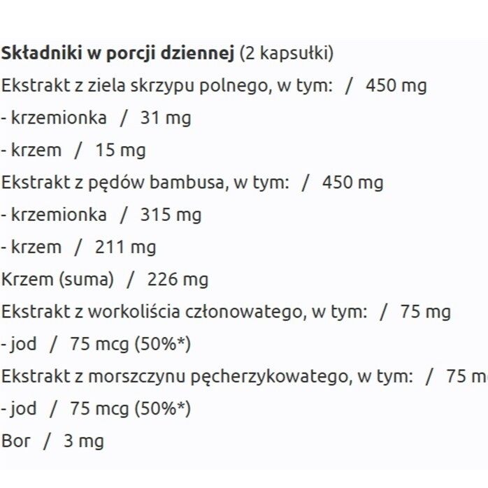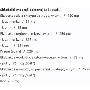 | Obszar działania: | Kości i stawy, Odporność, Regeneracja organizmu, Skóra, Włosy |