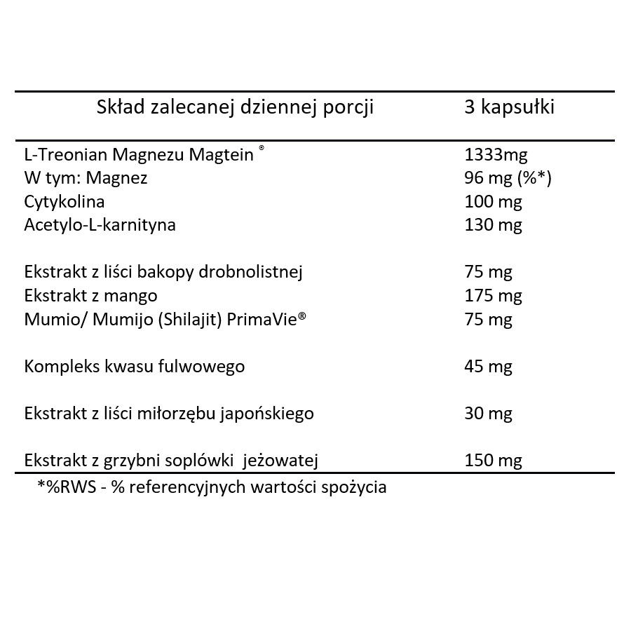 - Jedyna na świecie opatentowana i zbadana klinicznie forma L-treonianu magnezu.