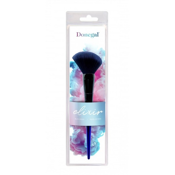 Donegal Elixir Brush to pędzel do różu o skośnie ściętym kształcie, przeznaczony do aplikacji zarówno sypkich, jak i prasowanych róży. Doskonale podkreśla kości policzkowe oraz inne partie twarzy. Wyjątkowy design pędzla Elixir nawiązuje do magicznego eliksiru, zachwycając eleganckim wykończeniem oraz nowoczesnym stylem.