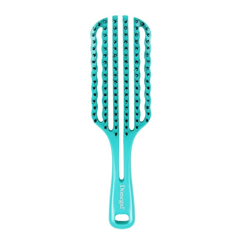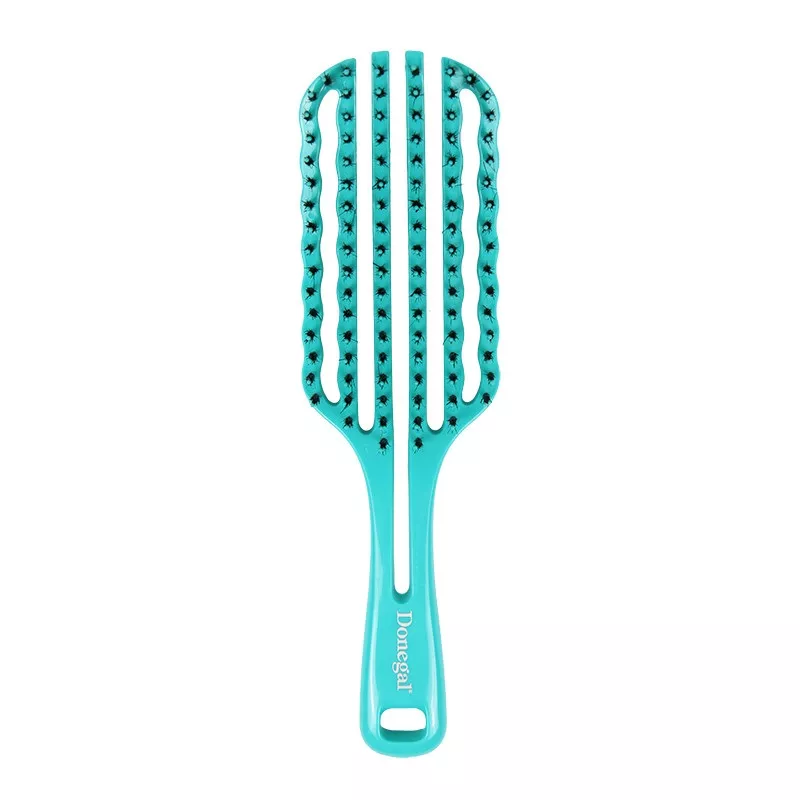 Donegal Miscella Brush wentylowana szczotka do włosów w kolorze niebieskim to innowacyjny produkt zaprojektowany specjalnie dla osób z cienkimi i delikatnymi włosami. Dzięki rewolucyjnej, szkieletowej budowie oraz wentylowanej główce, szczotka doskonale dostosowuje się podczas czesania, zapewniając komfort i efektywność.