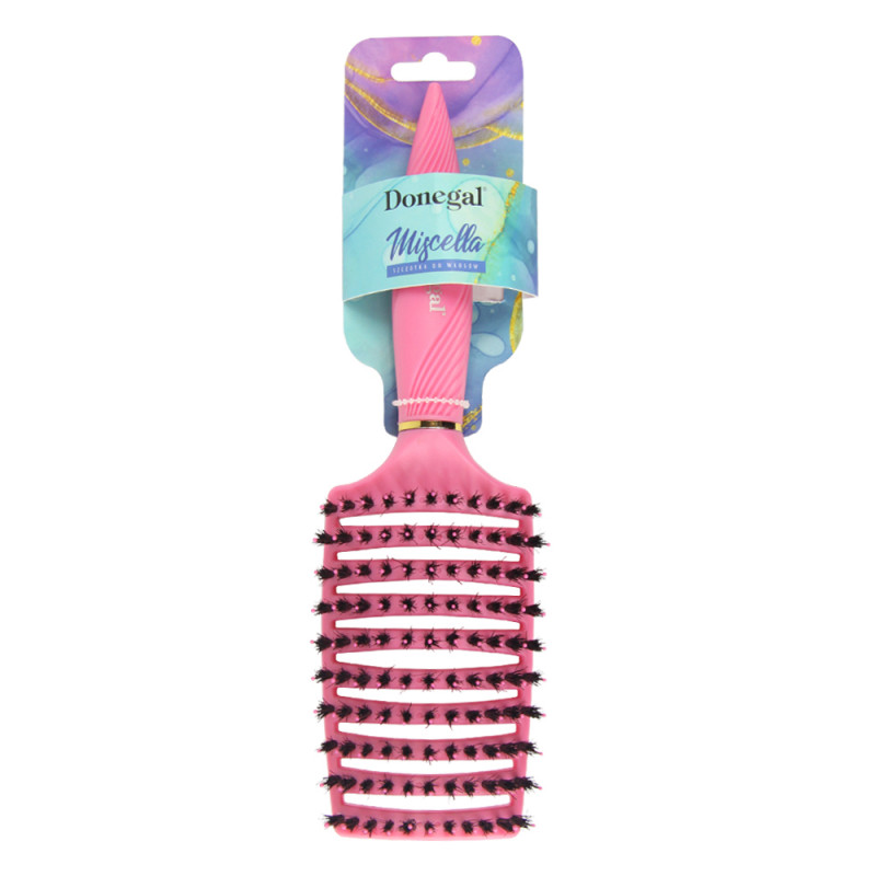 Donegal Miscella Brush wentylowana szczotka do włosów Różowa to innowacyjne narzędzie stworzone z myślą o posiadaczach cienkich i delikatnych włosów. Dzięki rewolucyjnej, szkieletowej budowie, szczotka ta zapewnia wygodne i efektywne czesanie.