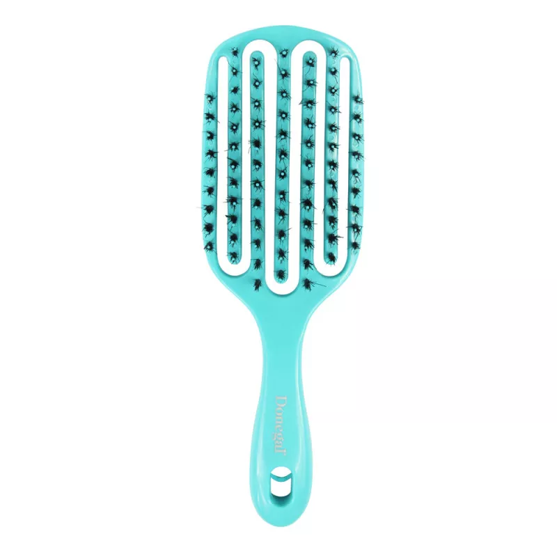 Poznaj Donegal Miscella Brush - turkusową, wentylowaną szczotkę do włosów, idealną dla osób z cienkimi i delikatnymi włosami. Ta rewolucyjna szczotka charakteryzuje się szkieletową budową, która ułatwia stylizację i pielęgnację włosów każdego dnia.