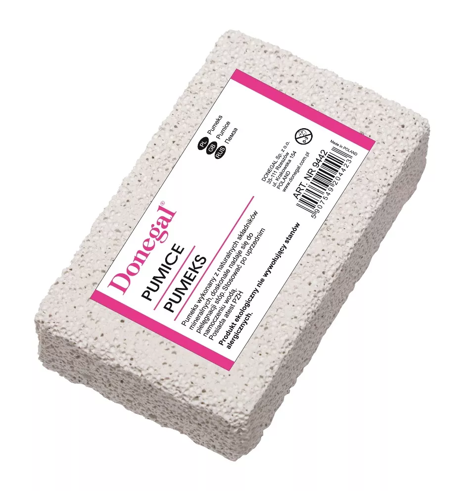 Pumeks naturalny Donegal 9442 to produkt stworzony z myślą o codziennej pielęgnacji stóp. Wykonany z naturalnych składników mineralnych, skutecznie usuwa zrogowaciały naskórek, pozostawiając skórę gładką i miękką. Jest to ekologiczny produkt, który nie wywołuje alergii, co czyni go idealnym wyborem dla osób o wrażliwej skórze.