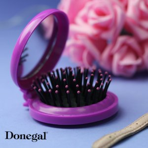 Donegal Składana szczotka z lusterkiem to praktyczne rozwiązanie dla osób ceniących wygodę i funkcjonalność. Dzięki kompaktowym rozmiarom zmieści się w każdej torebce, co czyni ją idealną do codziennego użytku i podróży. Miękkie, sprężyste igły zakończone kuleczkami zapewniają delikatne i skuteczne rozczesywanie włosów, minimalizując ryzyko ich uszkodzenia.