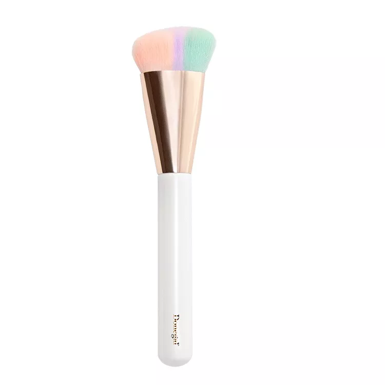 Donegal Sorbet Brush to pędzel do konturowania, który nie tylko zachwyca swoim fantastycznym designem, ale także solidną konstrukcją. Wyróżnia się tęczową miotełką wykonaną z syntetycznego włosia oraz rączką z lakierowanego drewna, co czyni go nie tylko estetycznym, ale i trwałym narzędziem do makijażu.