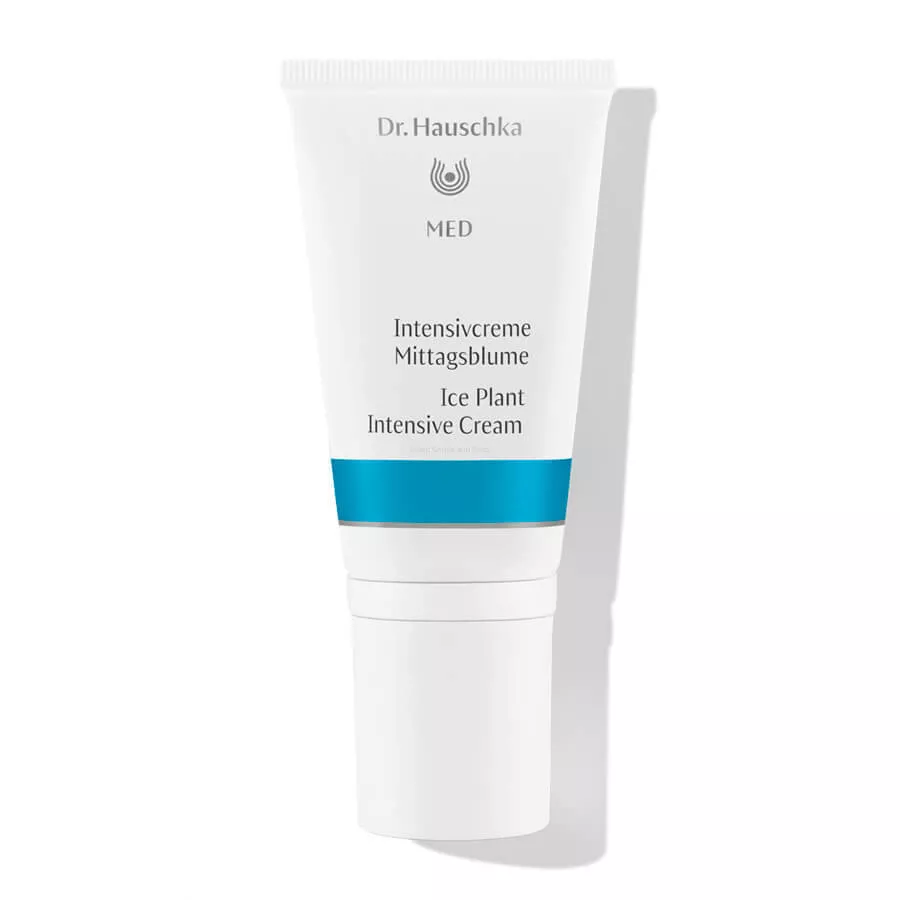 Dr. Hauschka Med Ice Plant Intensive Cream to intensywnie regenerujący krem do twarzy o pojemności 50 ml, stworzony z myślą o skutecznej pielęgnacji i nawilżeniu przesuszonej oraz podrażnionej skóry. Dzięki zawartości przypołudnika, produkt wspomaga skórę w wytwarzaniu własnych barier ochronnych, co istotnie zmniejsza uczucie dyskomfortu spowodowanego świądem i przesuszeniem. Krem jest szczególnie polecany do intensywnej pielęgnacji skóry atopowej, pielęgnując miejscowo bardzo suchą i swędzącą skórę.