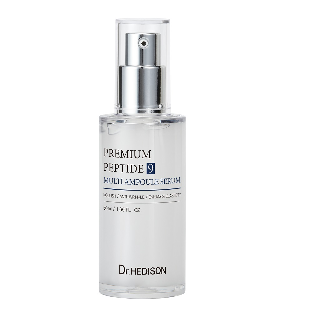 Dr. Hedison Premium Peptide 9 Multi Ampoule Serum to zaawansowane peptydowe serum do twarzy, stworzone z myślą o intensywnej pielęgnacji przeciwstarzeniowej. Unikalna formuła łączy w sobie aż 9 rodzajów peptydów, kompleks pięciu form kwasu hialuronowego, hydrolizowany kolagen oraz 57,49% wody gazowanej, by skutecznie redukować oznaki starzenia, głęboko nawilżać i poprawiać jędrność skóry. Lekkie, łatwo wchłaniające się serum dedykowane jest zarówno skórom suchym i odwodnionym, jak i osobom poszukującym skutecznego wsparcia w codziennej rutynie anti-aging.
