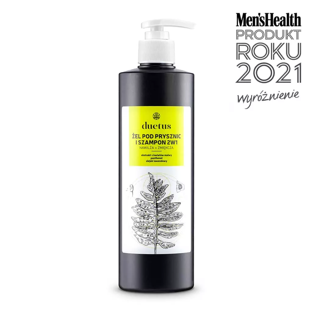 Duetus, Żel pod prysznic i szampon 2w1, to uniwersalny produkt do codziennego stosowania, który doskonale sprawdzi się zarówno do mycia ciała, jak i włosów. Oferuje świeży, ziołowy aromat, który pozostawia skórę i włosy odświeżone i pachnące. Dzięki swojej formule zawierającej łagodne składniki oczyszczające, nawilżającą glicerynę oraz ekstrakt z kwiatów malwy, skutecznie myje, nie powodując przesuszenia ani podrażnień, nawet w przypadku najbardziej wrażliwej skóry.