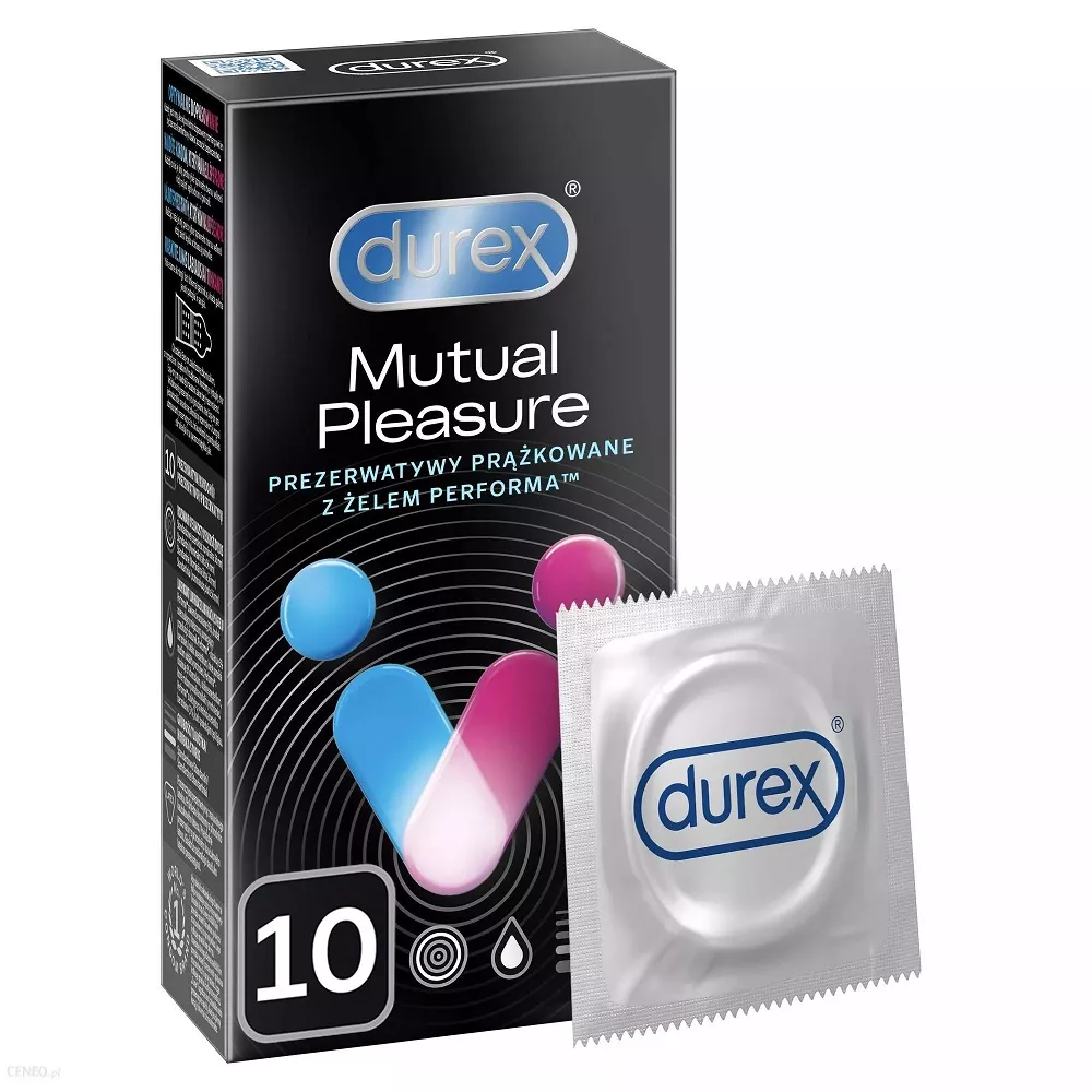 Prezerwatywy Durex Mutual Pleasure zostały zaprojektowane, aby zapewnić intensywne doznania obojgu partnerom i umożliwić osiągnięcie wspólnego orgazmu. Dzięki unikalnej prążkowanej powierzchni z wypustkami, prezerwatywy te zwiększają jej przyjemność, podczas gdy lubrykant z benzokainą wewnątrz opóźnia jego wytrysk, co pozwala na dłuższe chwile bliskości.