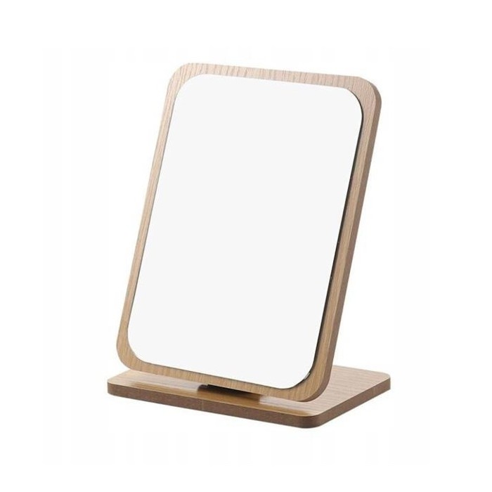 Lusterko kosmetyczne stojące Ecarla to elegancki i funkcjonalny dodatek do każdej toaletki lub biurka. Prostokątny kształt z zaokrąglonymi rogami, osadzenie w drewnianej ramie oraz minimalistyczny, naturalny design sprawiają, że lusterko doskonale wpisuje się w różnorodne aranżacje wnętrz. Stabilna drewniana podstawa i możliwość regulacji kąta nachylenia zapewniają wygodę podczas codziennych zabiegów pielęgnacyjnych i makijażu. Dzięki kompaktowym wymiarom (lusterko: 19x14,5 cm, podstawa: 16x10 cm), produkt nie zajmuje dużo miejsca, a jednocześnie jest niezwykle praktyczny.
