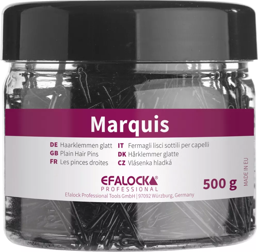 Aby uzyskać najlepsze rezultaty, delikatnie wsuń wsuwkę w stylizowaną sekcję włosów, aby utrzymać ją na miejscu. Wsuwki Efalock Marquis są idealne do utrwalania upięć, koków oraz innych kreatywnych fryzur.
