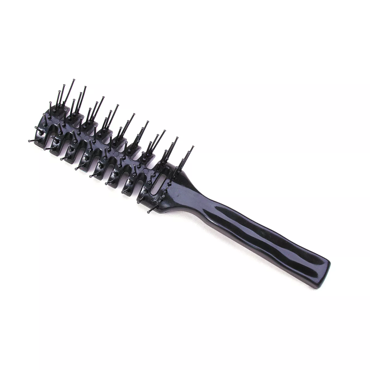 Szczotka do włosów typu Vent firmy Efalock to niezastąpione narzędzie zarówno w profesjonalnych salonach fryzjerskich, jak i podczas domowej pielęgnacji włosów. Wykonana z wysokiej jakości tworzywa sztucznego, wyposażona w igiełki zakończone kuleczkami, zapewnia delikatne i efektywne rozczesywanie włosów. Elegancki czarny kolor dodaje jej stylowego wyglądu.